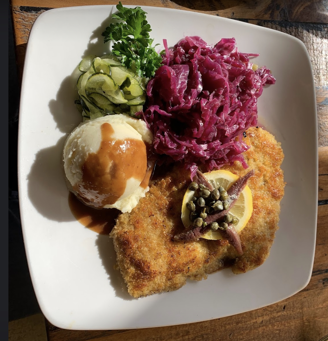 Lunch and dinner bring out heavier plates that suit Solvang’s cool coastal air. The roast pork with crackling is a standout, cooked until the skin snaps when you cut into it. I once spoke briefly with a cook who explained they dry the skin overnight before roasting, a classic Danish process that takes patience but delivers that signature crunch. Not every restaurant sticks to these methods anymore, which is why this one has remained a point of reference in so many local reviews.